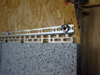 仕上げ材は特殊基盤にモルタル、接着剤で固定します。
