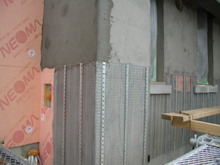 | ロッキング構法のALC造でも、ALC板間をまたいで石材を張る事が出来るので安全性を確保したうえ意匠性も損なわれません |